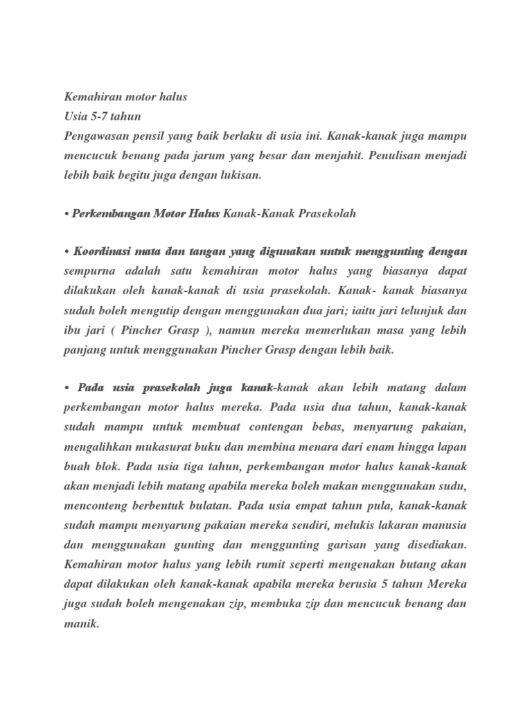 Kemahiran Motor Halus Dan Motor Kasar Kanak-Kanak : Motor kasar kemahiran motor kasar merangkumi perkembangan postur statik, keseimbangan badan dan beberapa jenis pergerakan seperti merangkak dan berjalan.. Kemahiran motor, penglihatan, pendengaran, pertuturan dan bahasa, personal sosial dan kognitif. Menggerakkan kereta mainan mengikut lorong yang disediakan dengan bimbingan. Menarik tali kereta dengan lakuan betul (kemahiran motor kasar, motor halus dan koordinasi mata tangan). Motor kasar kemahiran motor kasar merangkumi perkembangan postur statik, keseimbangan badan dan beberapa jenis pergerakan seperti merangkak dan berjalan. Teruskan memuat turun dan tidak perlu tinggalkan mesej sebab.